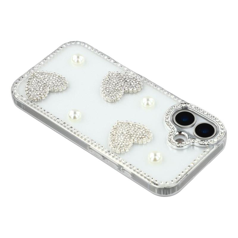 This iPhone 17 case combines reliable everyday protection with glamorous style. Featuring shimmering rhinestones around the edges and sparkling pearl heart decorations on the back, it turns your iPhone 17 into a fashionable accessory while keeping it safe from scratches and bumps.