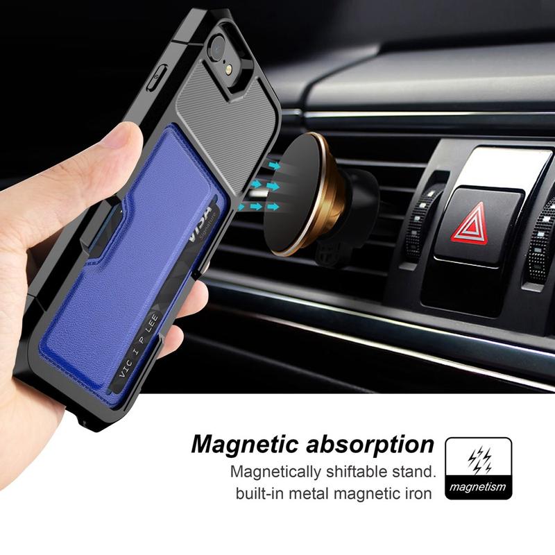 Umístěte svou kreditní kartu do zadní kapsy a použijte ji jako stojan, díky chytrému slotu navrženého. Nedělejte si starosti s hrboly a škrábancemi, protože je absorbuje kryt TPU se vyztuženými hranami. Vestavěná kovová deska umožňuje využití tohoto hybridního pouzdra na kartu s magnetickými držáky. Zvednuté hrany kolem kamery a obrazovky vaší iPhone 7, iPhone 8, iPhone SE (2020), iPhone SE (2022) poskytují další ochranu.