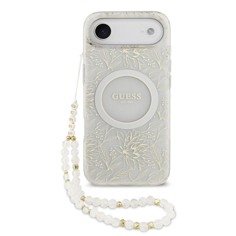 Guess IML Flowers Allover Electro Case with Pearl Strap for iPhone Air - MagSafe Compatible