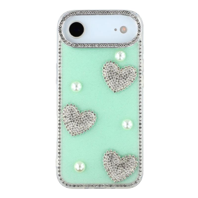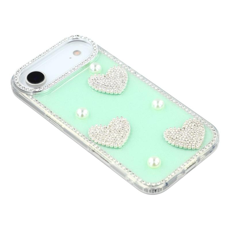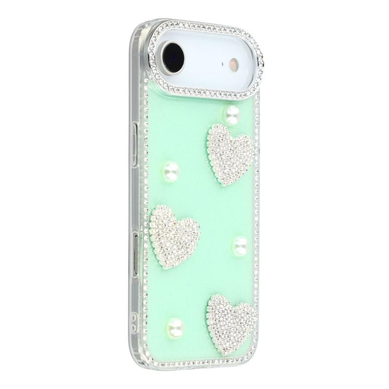This iPhone Air case combines reliable everyday protection with glamorous style. Featuring shimmering rhinestones around the edges and sparkling pearl heart decorations on the back, it turns your iPhone Air into a fashionable accessory while keeping it safe from scratches and bumps.