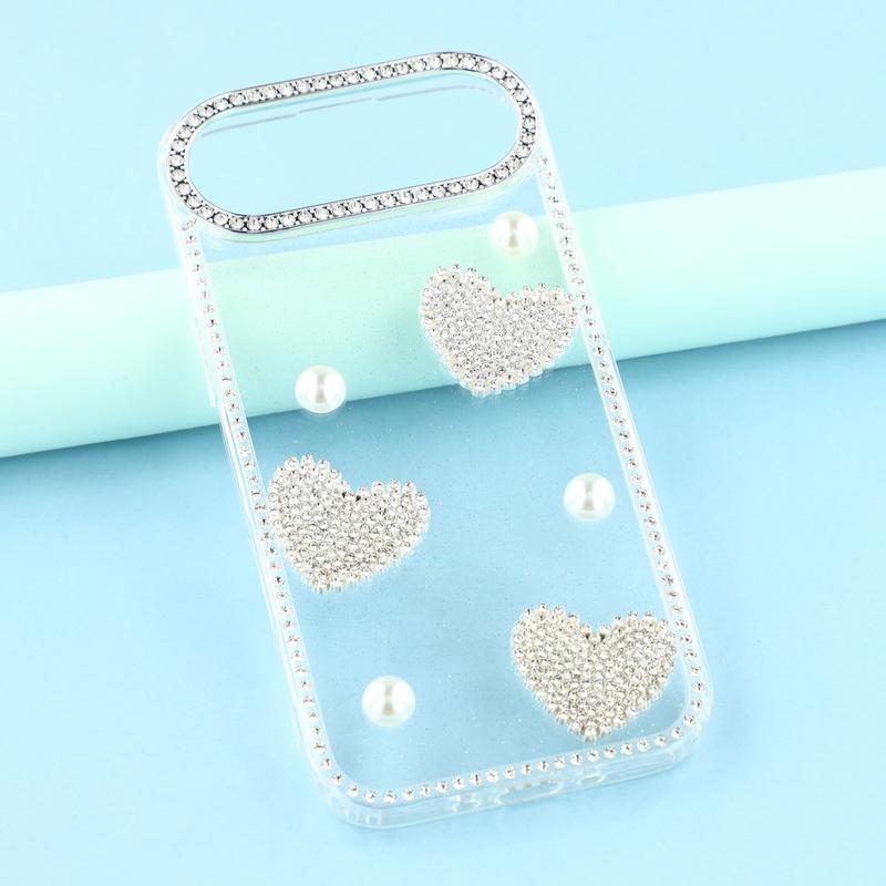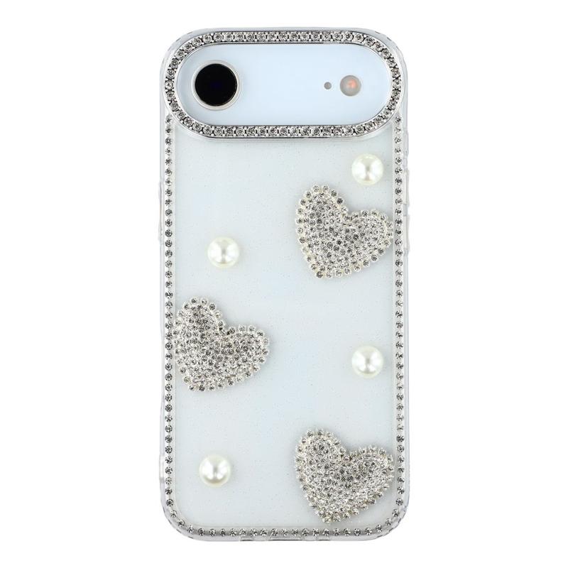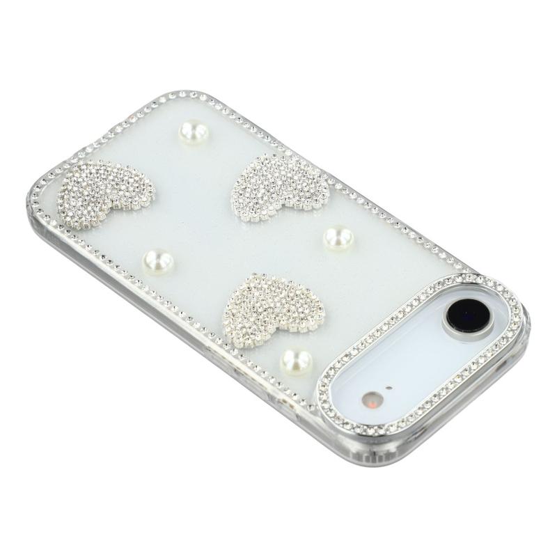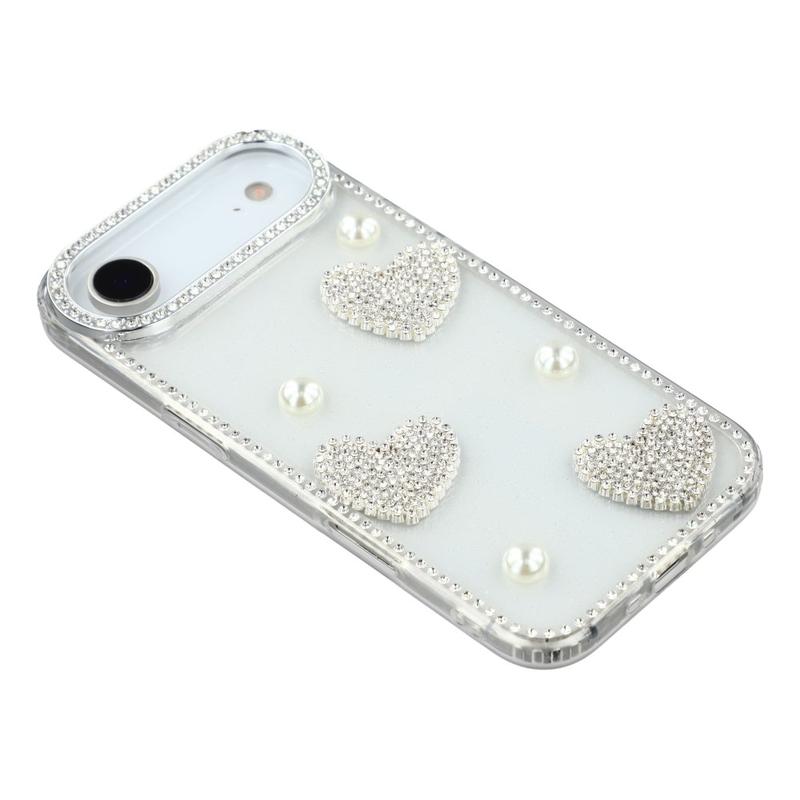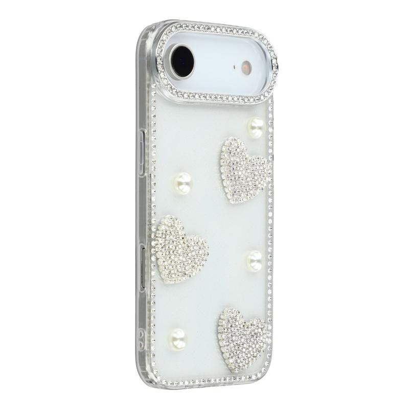 This iPhone Air case combines reliable everyday protection with glamorous style. Featuring shimmering rhinestones around the edges and sparkling pearl heart decorations on the back, it turns your iPhone Air into a fashionable accessory while keeping it safe from scratches and bumps.