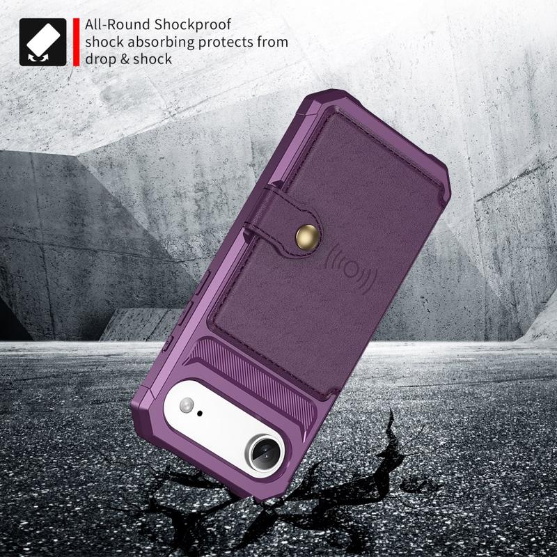 - iPhone Air wallet case has a secure snap button closure, wallet design, and several card slots with a cash pocket