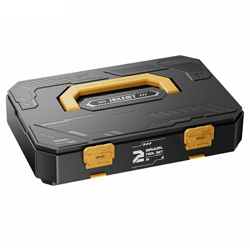 The JAKEMY JM-8199 257-in-1 Home Repair Tool Kit is a complete solution for household maintenance, DIY projects, and professional repairs. Featuring a modular design, it allows customizable combinations for different repair scenarios, making it highly versatile. The included 2-in-1 manual screwdriver supports H4.0 and H6.3 bits without adapters and is equipped with a dual-purpose connector for quick blind insertion. Its ergonomic handle increases torque by 20%, delivering up to 5NM for efficient performance. With convenient onboard bit storage and a portable design, this toolkit ensures you’re ready for any repair task at home or on the go.
