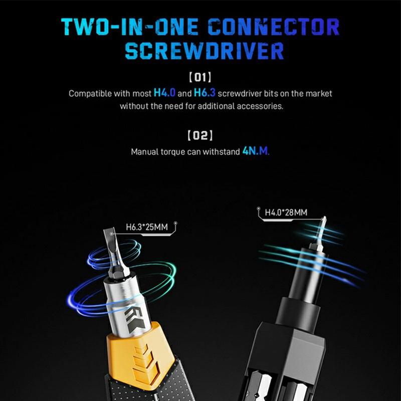 - 2-in-1 Screwdriver - Dual-purpose connector compatible with H4.0 and H6.3 bits without adapters.