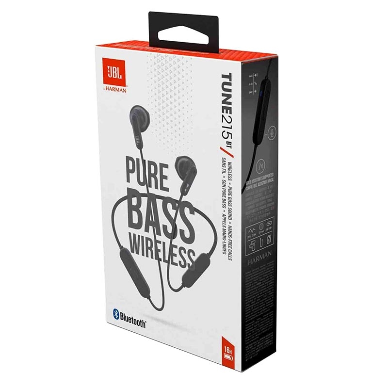 Bezdrátová sluchátka JBL Tune 215BT Pure Bass s páskem na krk, mikrofonem, Bluetooth 5.0 - Doba přehrávání hudby/hovoru: až 16 hodin