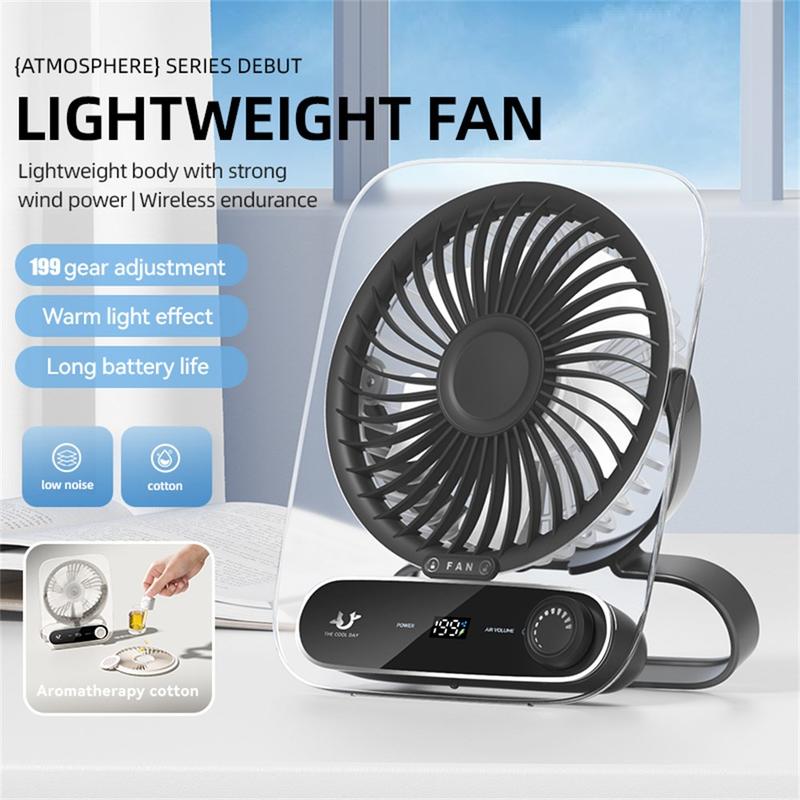 JF136 Wide-Angle Portable Desk & Hanging Fan / 199-Speed 3000mAh USB-C Rechargeable Cooler