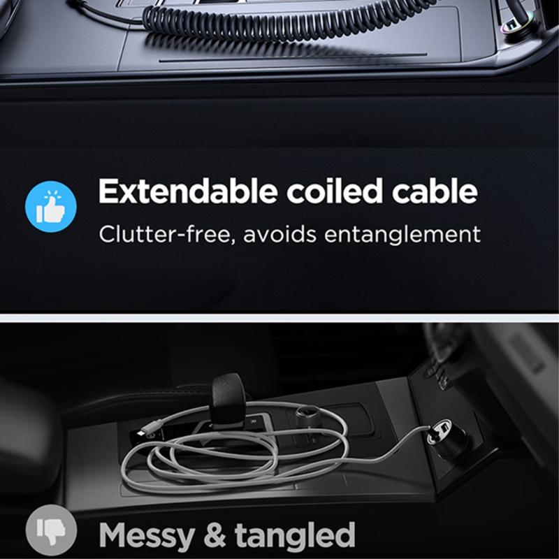 - Car commutes: coil stays tidy around the gear lever, yet stretches far enough for back-seat passengers.