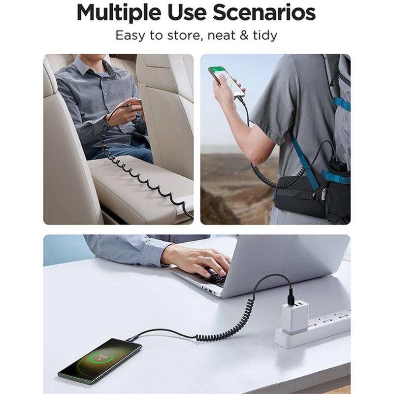 Fed up with tangles on the passenger seat or backpack? This Joyroom Easy-Travel cable stretches to 1.5 m when you need reach, then recoils into a neat spiral that drops straight into your pocket. A 3A output, smart safety chip and 480 Mbps data rate mean you can top-up a phone or power bank quickly while still syncing playlists or maps.