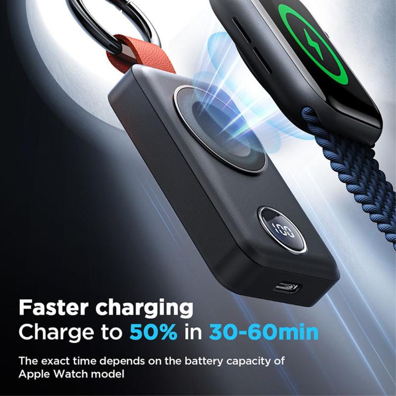 Keep your Apple Watch powered anywhere with the Joyroom JR-WQW01 portable wireless watch charger. This compact 2000mAh power bank is designed as a keychain-friendly charger with a clear digital battery display, so you always know how much power is left. With automatic sensing and plug and play use, it starts charging quickly without complicated setup, making it perfect for travel, workdays, and emergency top-ups.