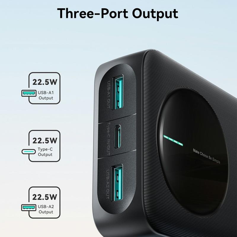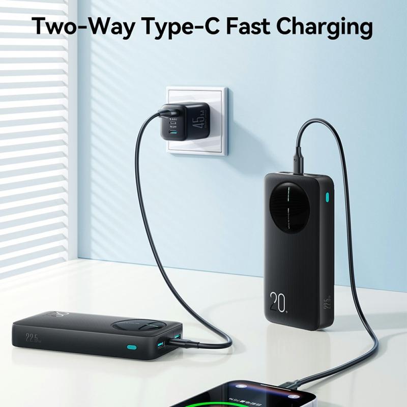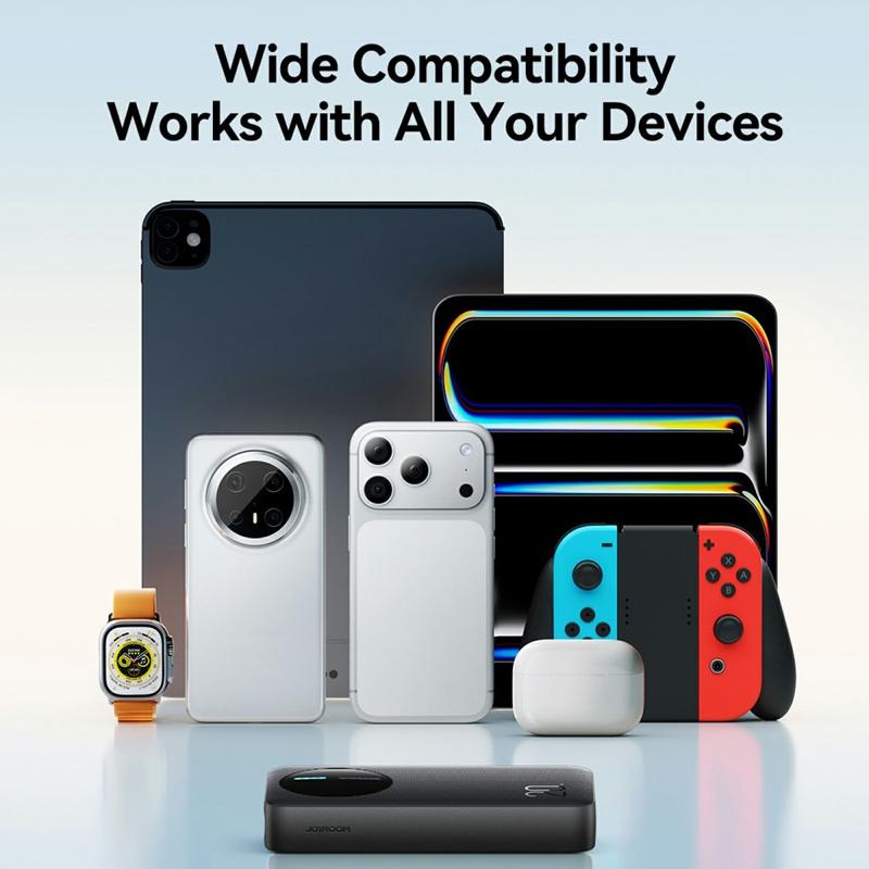 The JOYROOM JR-PBF14 Pro power bank is built for busy days, travel, and multi-device charging. With a high 20000mAh capacity, it gives you dependable backup power for smartphones, tablets, earbuds, and more. Fast charging up to 22.5 W helps reduce waiting time, while three output ports let you charge up to three devices simultaneously. A clear 4-LED indicator shows remaining power at a glance, so you always know when it’s time to recharge.