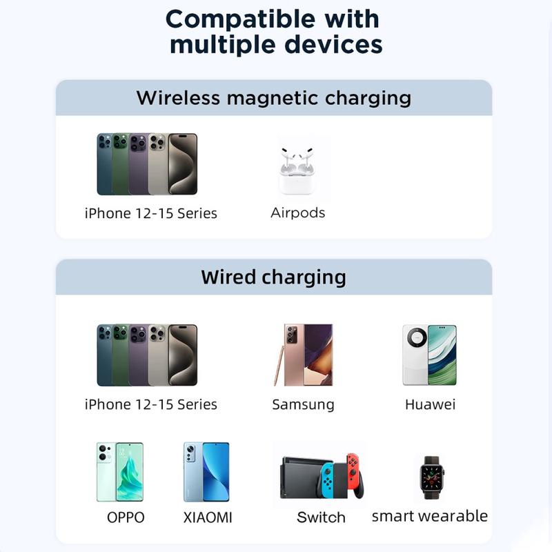 Dodává se s odnímatelným kabelem, jedním kabelem lze nabíjet tři zařízení, včetně zařízení Apple/Android/samonabíjení