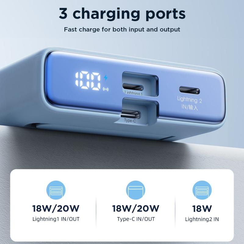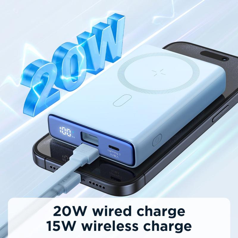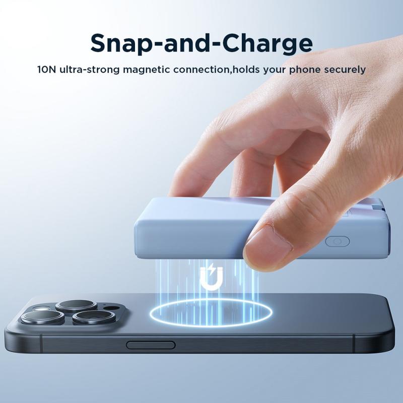 JOYROOM JR-PBM01 PD 20W 10000mAh telefonní powerbanka Magnetická bezdrátová nabíječka s vestavěným kabelem / stojánkem