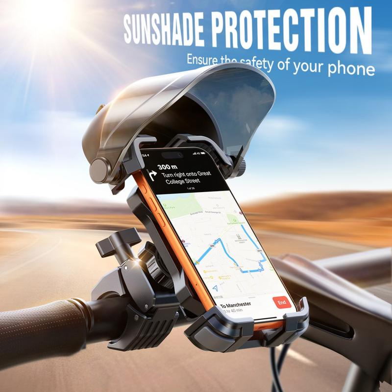 Keep your phone secure and clearly visible during every ride with the Joyroom JR-ZS528 bike phone holder. Designed for cyclists who use navigation, fitness apps, or music while riding, this handlebar mount combines a stable clamp system with a practical adjustable sunshade that improves screen visibility in bright sunlight.