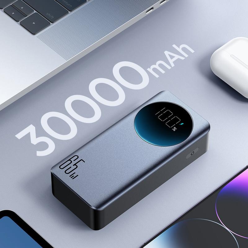 Power phones, tablets, and even laptops on the go with the Joyroom JRPBF05 30000mAh power bank. Built for fast charging, it delivers up to 65W Power Delivery via USB-C and supports two-way fast charging, so the power bank itself can recharge quickly as well. A large digital display shows battery level and charging status at a glance, while smart temperature control helps keep charging efficient with less heat. With multiple ports, it is ideal for travel, commuting, and work setups where you need reliable backup power.