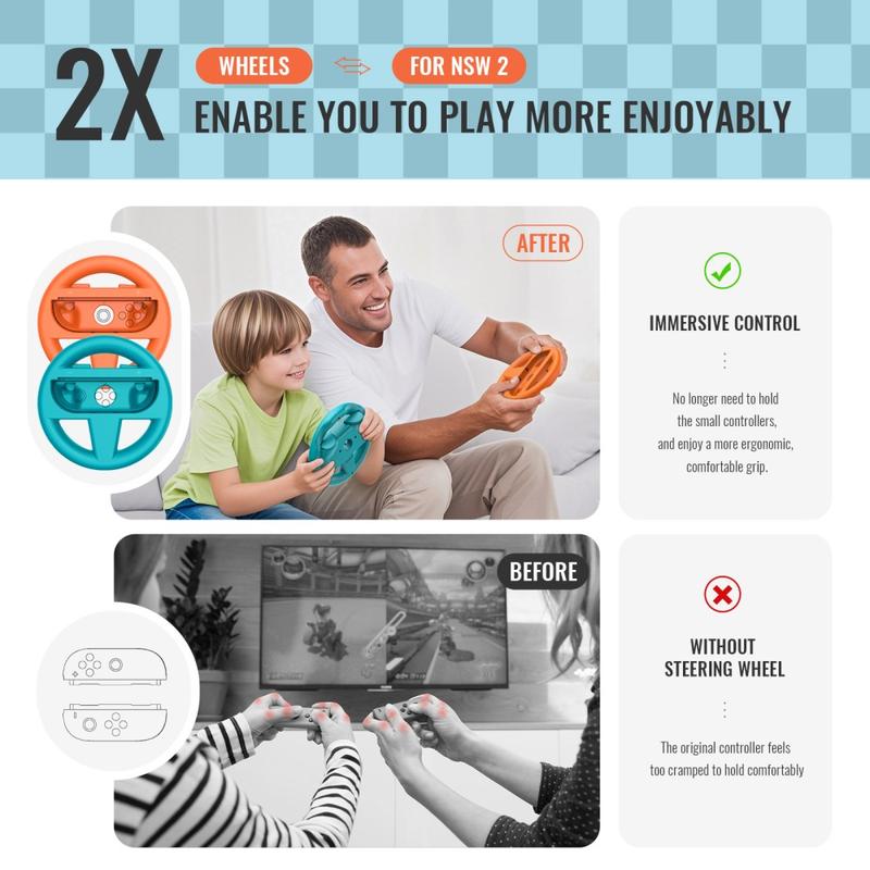 - Pack includes both left and right wheels for split-screen or head-to-head play