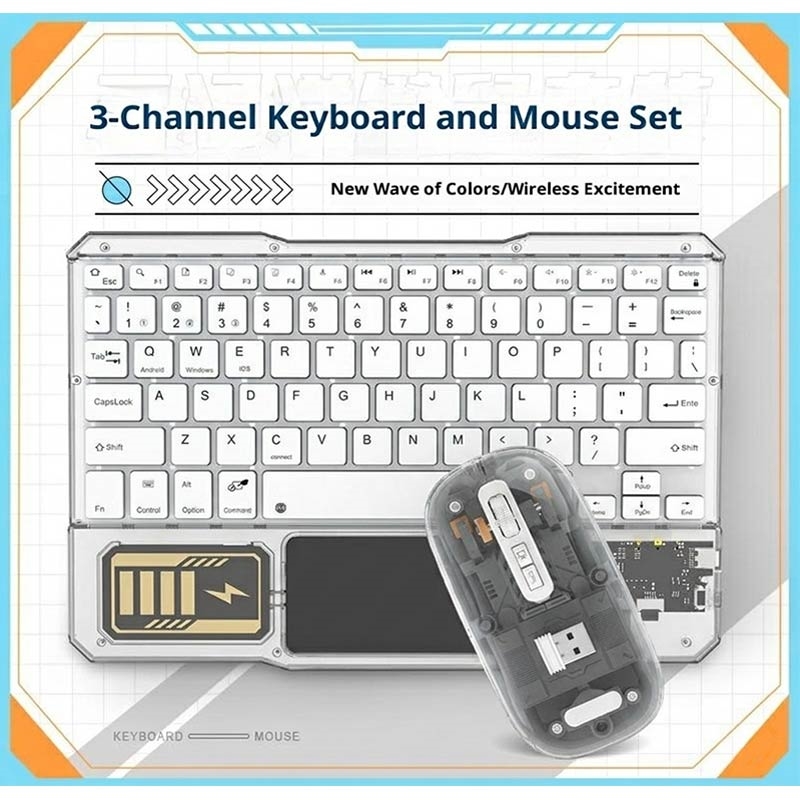 KB333 Transparent Bluetooth Keyboard and Mouse Set - 3-Channel Wireless RGB Backlit Keyboard with Touchpad