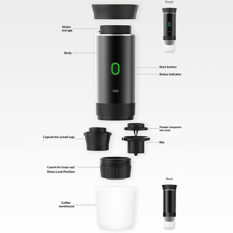 KF-JN-02 3-in-1 Portable Electric Espresso Machine - 20 Bar USB Coffee Maker for Capsules and Ground Coffee