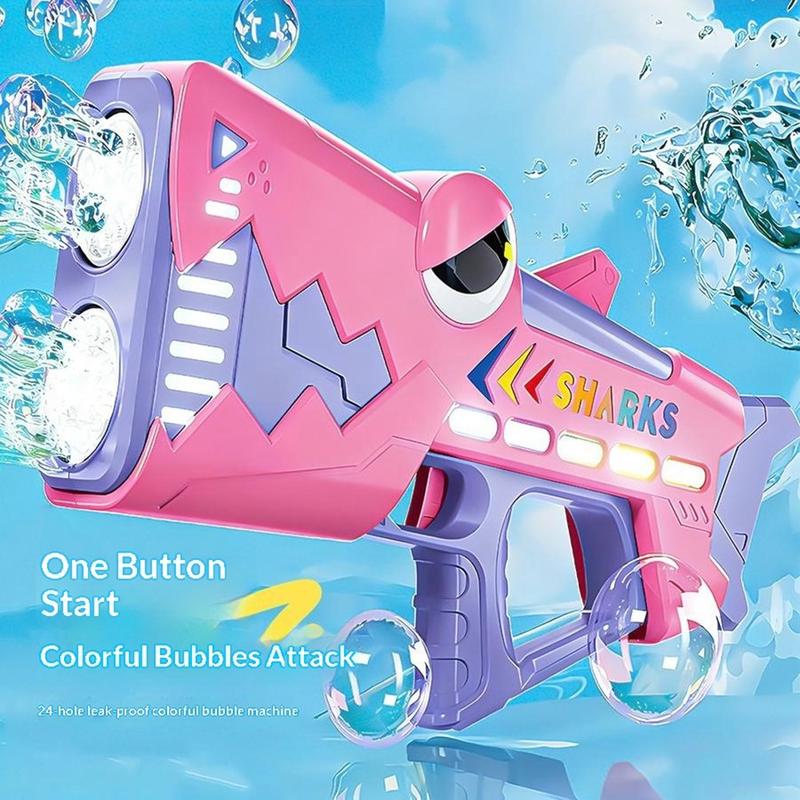 Kids Shark Electric Bubble Gun - 24-Hole Automatic Bubble Machine with LED Lights, USB Rechargeable Bubble Blaster