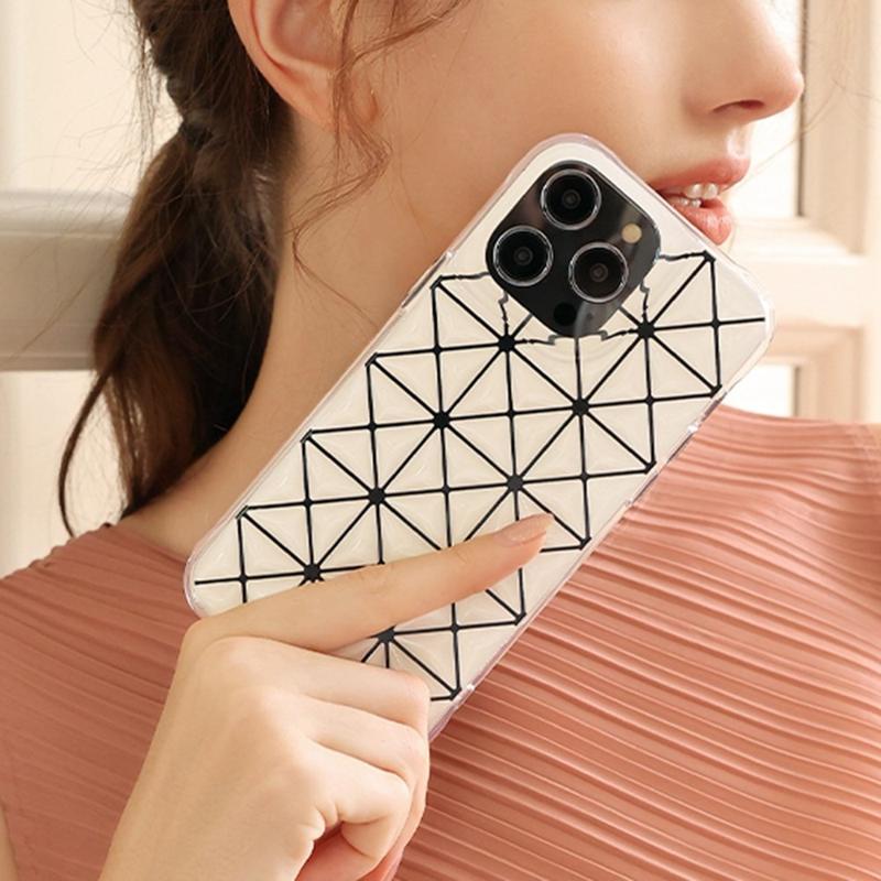 Řada KINGXBAR Miya pro iPhone 14 Pro Max s kosočtvercovým vzorem 3D Pouzdro na telefon IMD TPU + PET vyztužené rohy kryt proti poškrábání