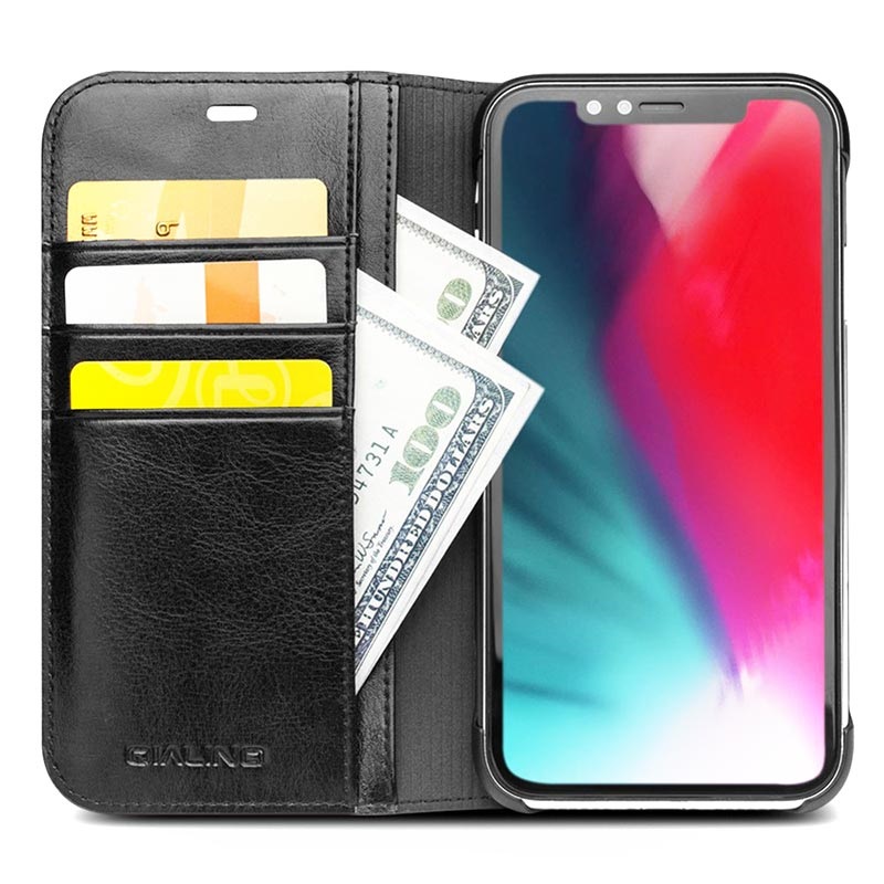 Klasická peněženka Qialino Klasická kožená pouzdro pro iPhone XR