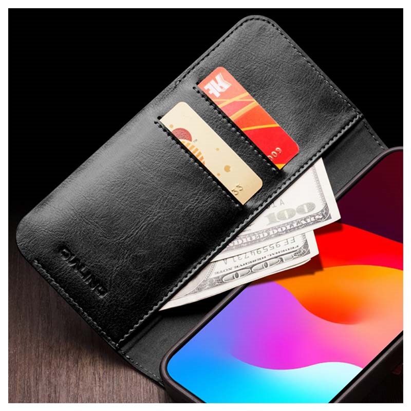 Chraňte svůj iPhone 15 Plus v elegantním a módním stylu s tímto případem Qialino Classic peněženky. Také si vezmete své vždy potřebné karty a hotovost ve vnitřních oddílech.