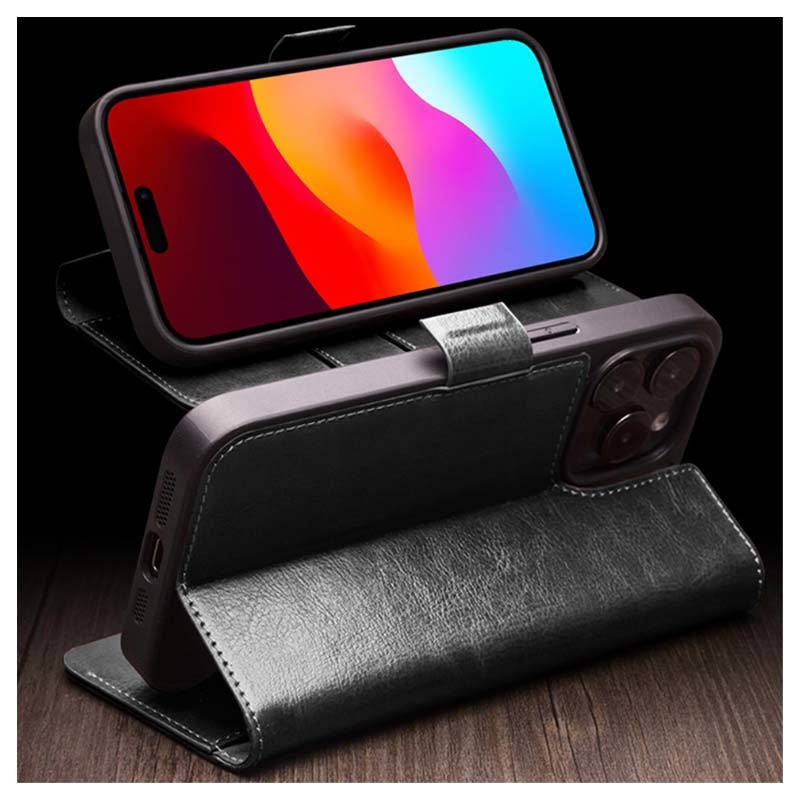 Klasická peněženka Qialino Klasická kožená pouzdro pro iPhone 15 Plus