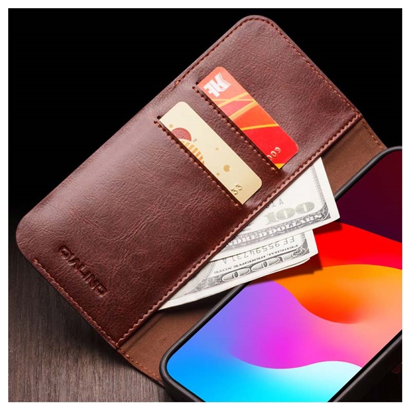 Chraňte svůj iPhone 15 Plus v elegantním a módním stylu s tímto případem Qialino Classic peněženky. Také si vezmete své vždy potřebné karty a hotovost ve vnitřních oddílech.