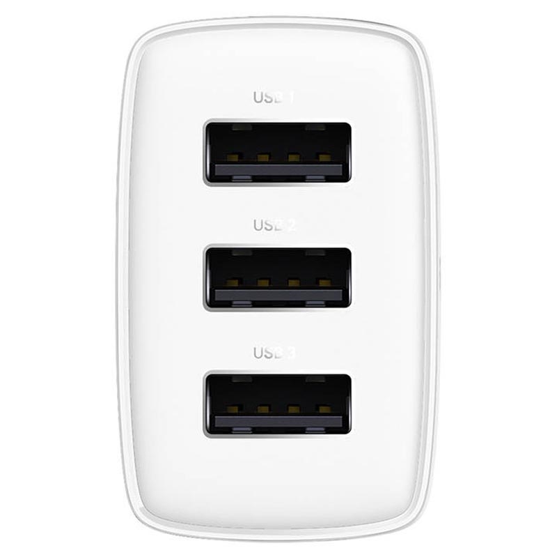 Kompaktní rychlonabíječka Baseus, 3x USB, 17 W (bílá)