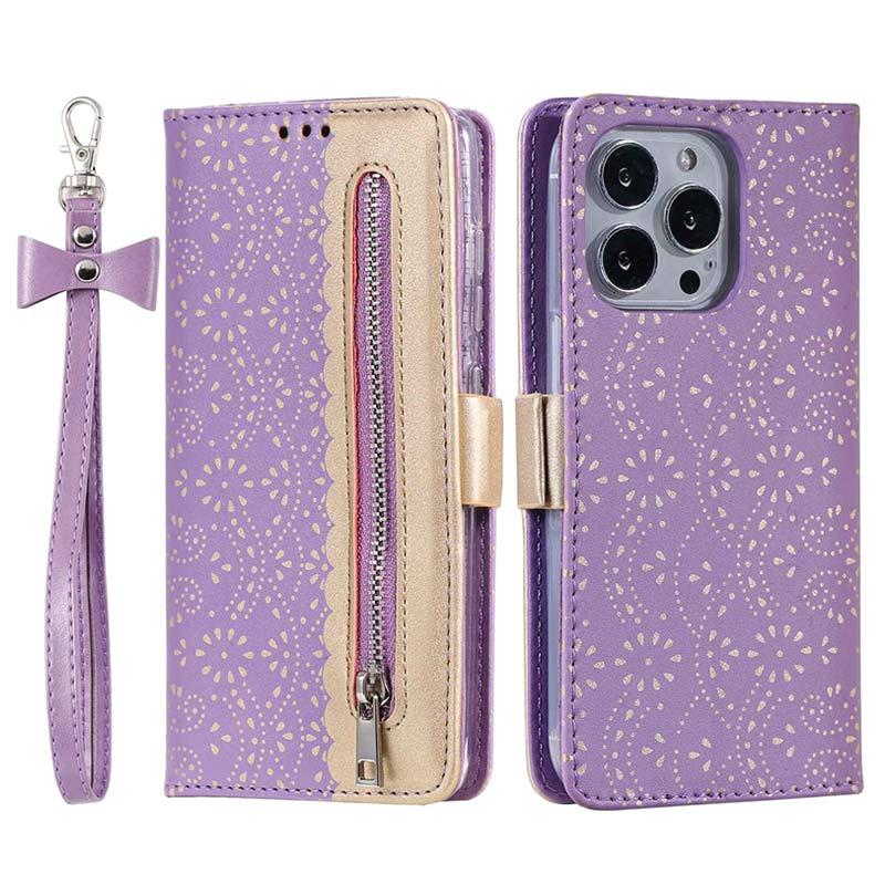 Tento neuvěřitelně stylový pouzdro na krajkové vzory chrání váš iPhone 14 Pro Max před poškozením a přední kapsa na zip vám umožní ukládat papírové peníze a mince.
