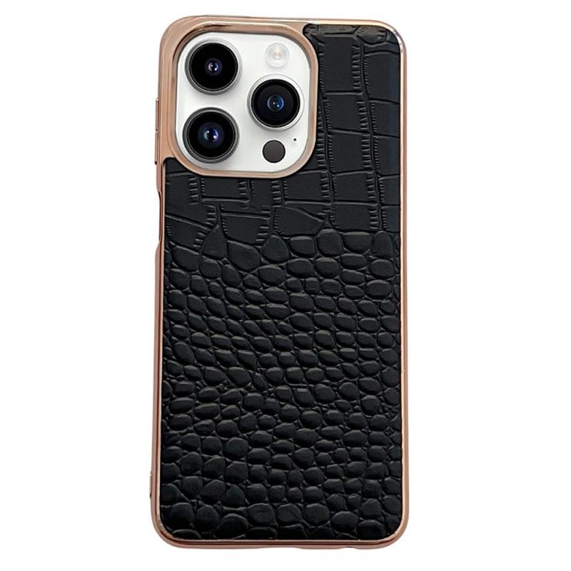 Pro iPhone 14 Pro Krokodýlí textura Nano galvanické pokovování Originální hovězí kůže potažená TPU + PC pouzdro