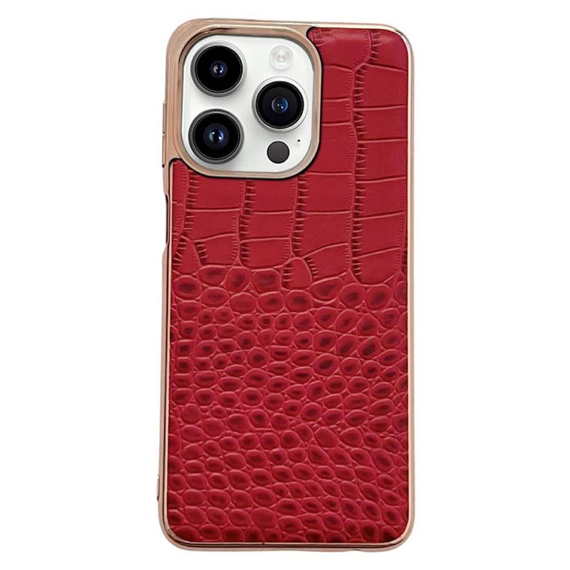 Pro iPhone 14 Pro Krokodýlí textura Nano galvanické pokovování Originální hovězí kůže potažená TPU + PC pouzdro