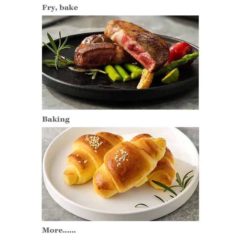 - Multi-function design suitable for frying, baking, grilling and roasting