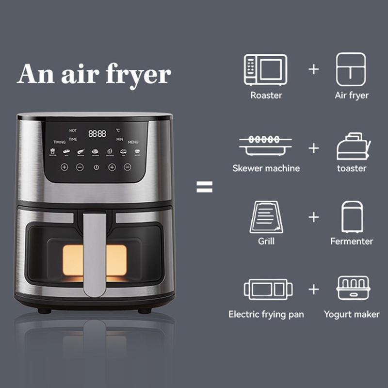 7L Large Capacity 1500W Multi-Function Stainless Steel Air Fryer with Viewing Window - EU Plug