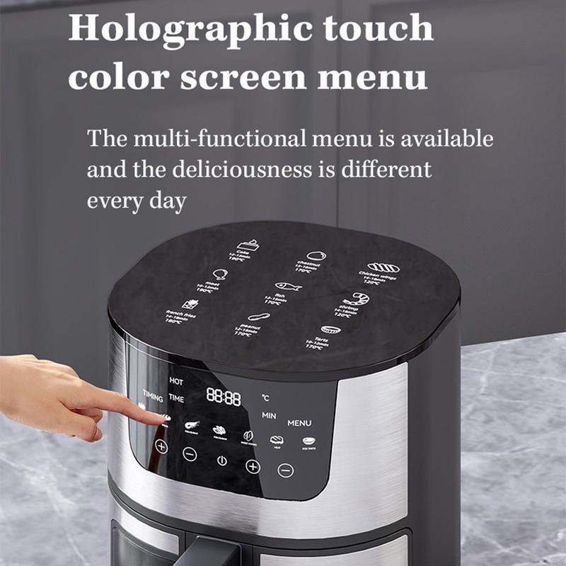 The 7L 1500W multi-function stainless steel air fryer brings powerful, family-sized cooking to your kitchen. With a spacious 7-liter capacity, it allows you to prepare generous portions in a single batch—ideal for families, gatherings and everyday meals. The durable combination of stainless steel and plastic exterior, paired with a non-stick aluminum-coated inner pot, ensures long-lasting performance and easy cleaning.