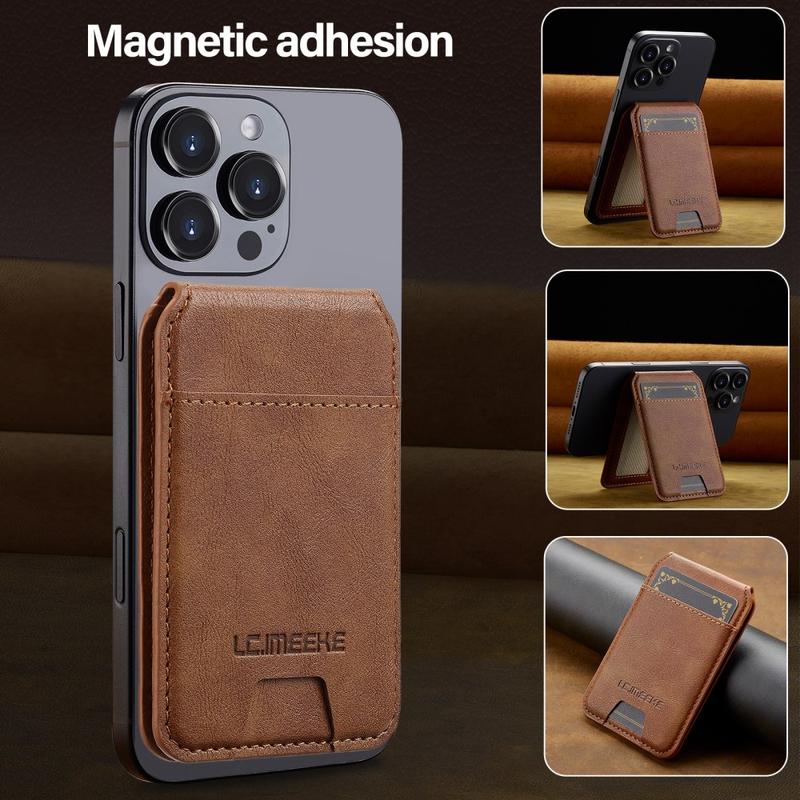 The LC.IMEEKE magnetic card holder is a slim and stylish phone accessory that combines secure card storage with everyday convenience. Designed to attach magnetically to compatible phones, it keeps your essential cards close while maintaining a lightweight profile. With an adjustable kickstand for hands-free viewing and built-in RFID protection, this wallet is ideal for daily use—whether you’re commuting, travelling, or relaxing at home.