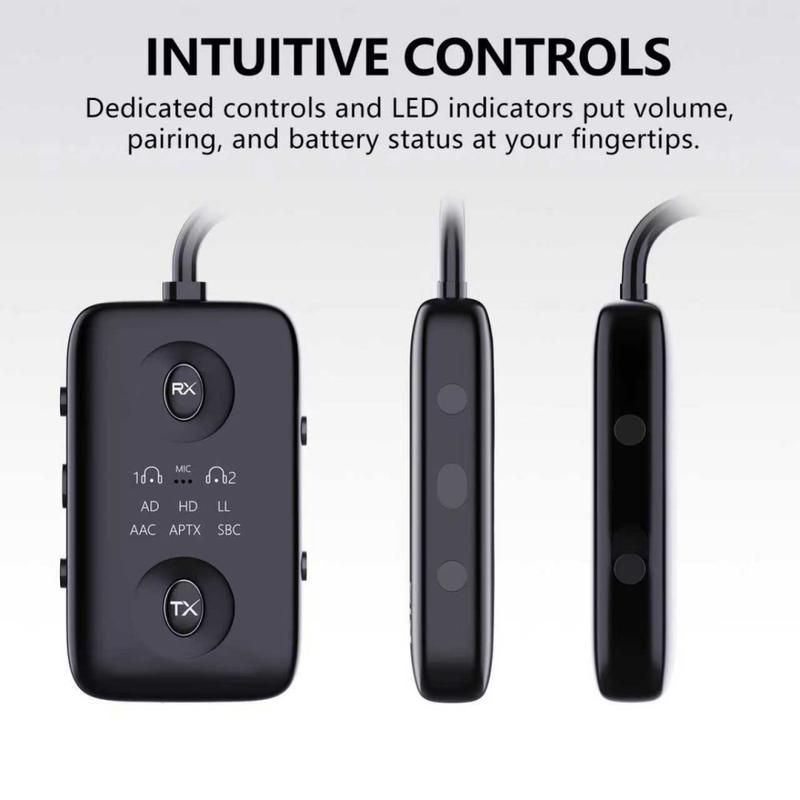 - Dual-mode Bluetooth 5.4 adapter functioning as both a transmitter (TX) and receiver (RX)