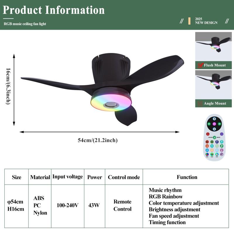 Swap clutter for style: this sleek 54 cm ceiling fixture blends a 3-speed brushless fan, colour-changing LEDs and a 3 W Bluetooth speaker into one minimalist disc that cools, lights and entertains all at once. It installs like a standard lamp yet delivers fully dimmable white light, vivid RGB effects and a hush-quiet breeze controlled from a slim handset.
