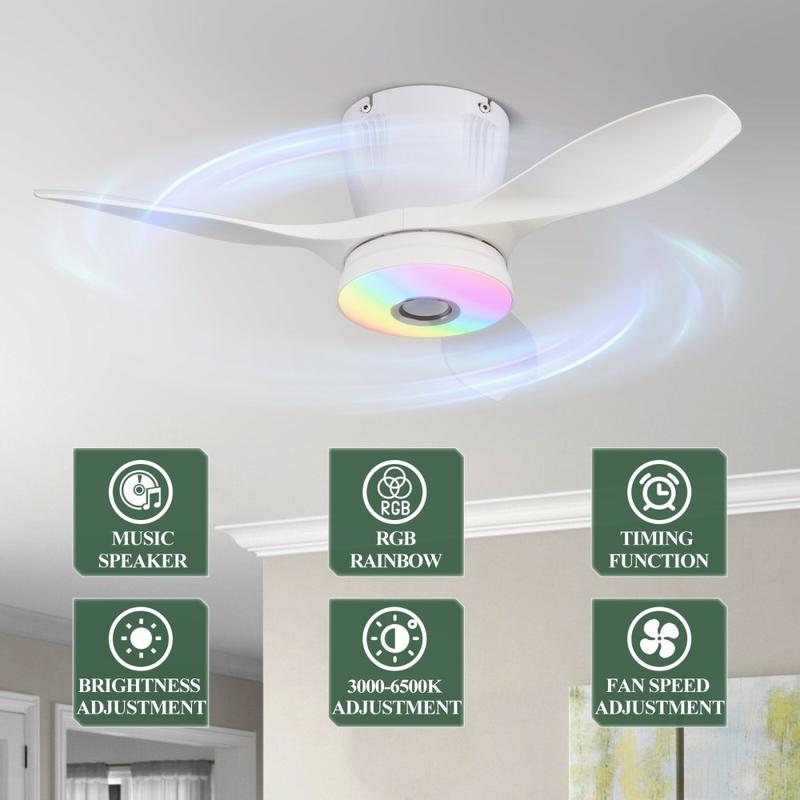 • LEC016R Ceiling Fan Light – RGB Mood, Quiet Airflow & Built-In Bluetooth Speaker