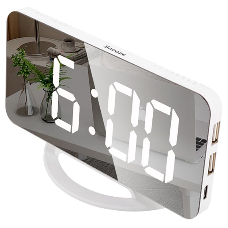 • LED budík s digitálním displejem, zrcadlem a odnímatelným stojanem TS-8201-2x USB-A Output