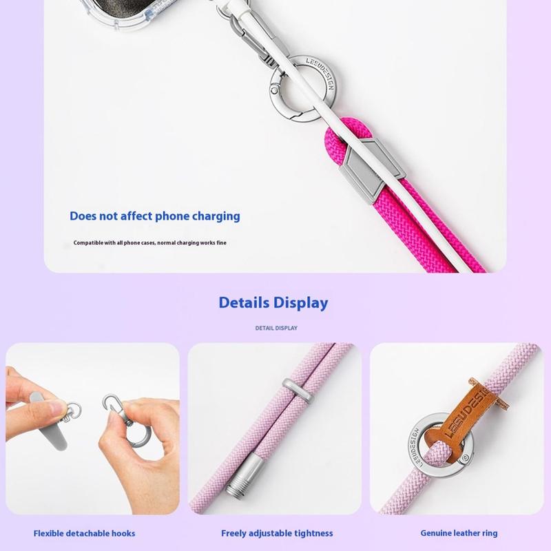 Crossbody phone straps are one of the fastest-growing smartphone accessories in Europe, thanks to their practicality and trend appeal. The 6 mm woven polyester rope offers excellent durability while maintaining a soft, flexible texture for all-day comfort.