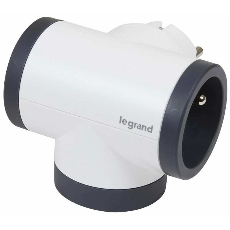 Legrand 049437 Rotating Bi-Plug with 2x Side 2P+T Outlets & USB-A/USB-C - 16A, 3680W