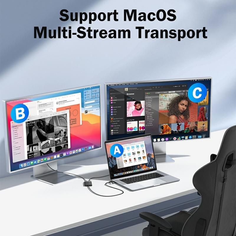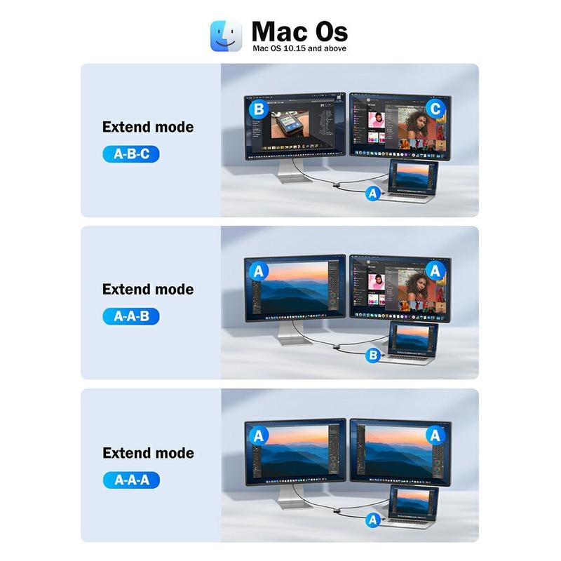 This adapter features two HDMI outputs, supporting extended and mirrored display modes. One port supports 4K resolution at 30 Hz (via TUTULINK driver), while the second delivers 1080P Full HD, allowing flexible display combinations for work, presentations or entertainment.