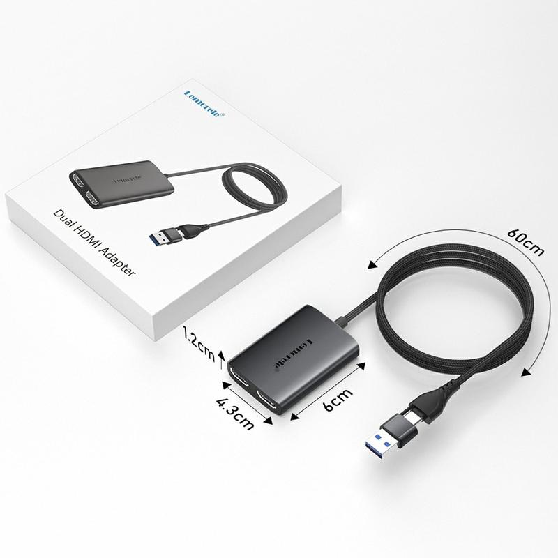 Lemorele HD10 USB-A/USB-C to Dual HDMI Adapter – Dual Display Converter with 4K & 1080P Output