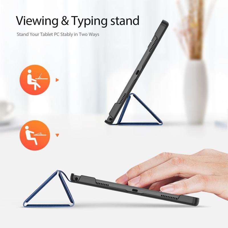 Toto příslušenství chrání zařízení před promáčknutím a poškrábáním a rozšiřuje jeho funkčnost. Přední chlopeň slouží jako stojánek se třemi režimy pro snadné psaní a sledování videa bez použití rukou.