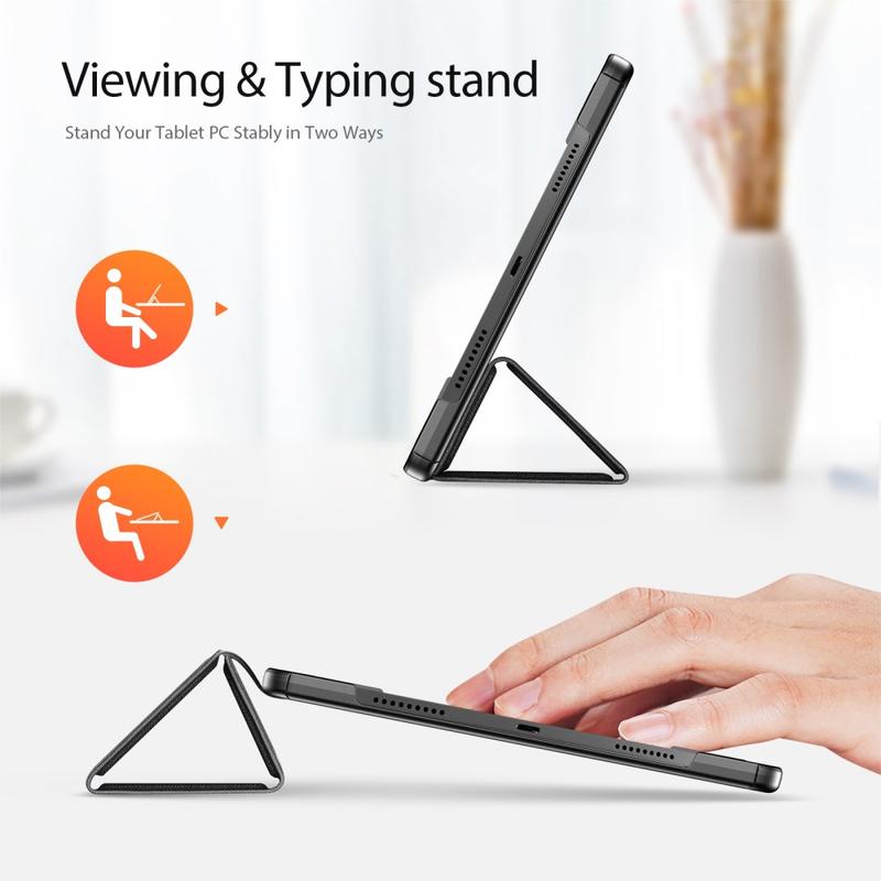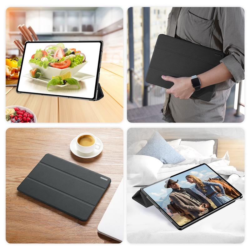 Toto příslušenství chrání zařízení před promáčknutím a poškrábáním a rozšiřuje jeho funkčnost. Přední chlopeň slouží jako stojánek se třemi režimy pro snadné psaní a sledování videa bez použití rukou.