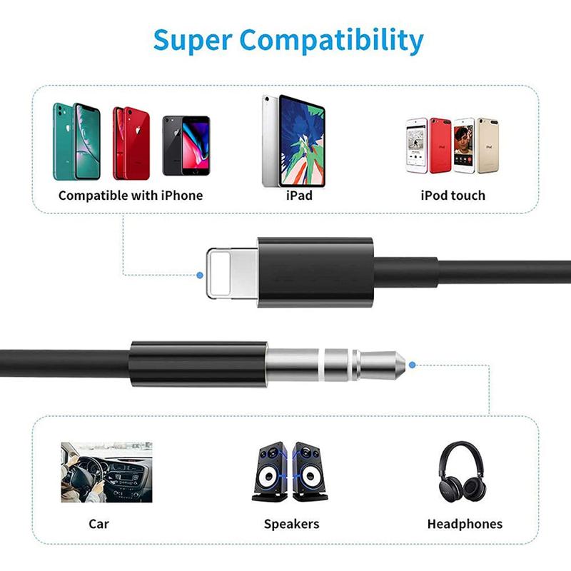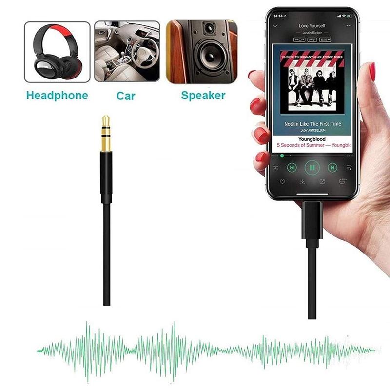 Use this auxiliary cable converter to connect for iPhone to home/car/computer stereo, earphones, Bluetooth, speakers, and enjoy high-quality music at any time(Does not support the call function)
