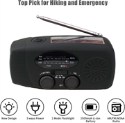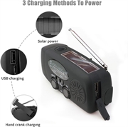 - Multiple Power Sources: Utilizes a hand crank, solar panel, and USB charging to ensure continuous operation during power outages or outdoor adventures.