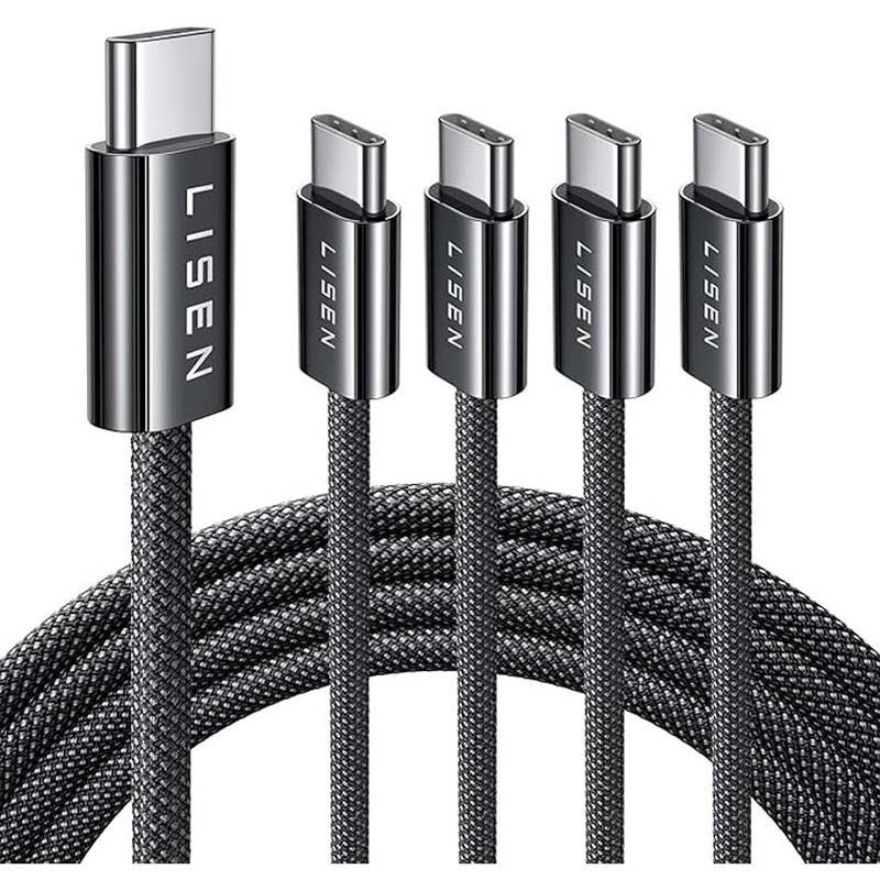 Lisen USB-C to USB-C Cable Set - 60W, 3A, Power Delivery Fast Charging, Braided Nylon, Multiple Lengths