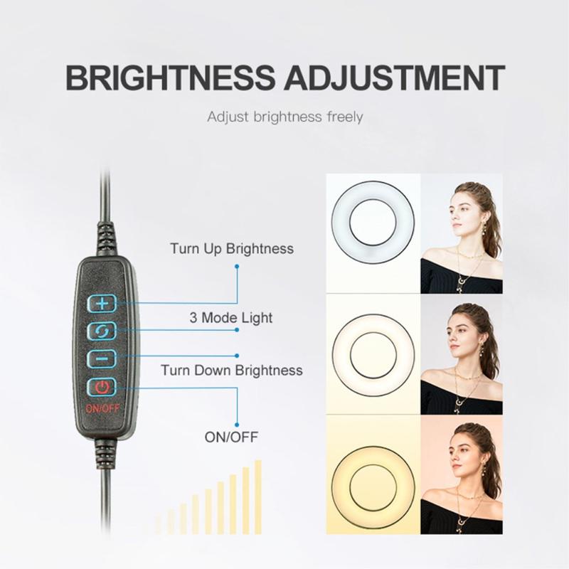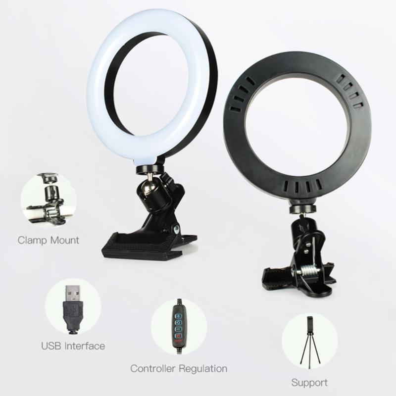 Live Broadcast Video Shooting 6" 3 Color Modes LED Selfie Ring Light + Clamp Mount
