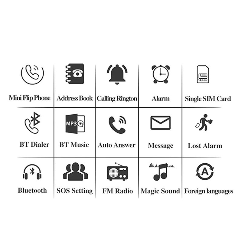 Long -CZ J9 Mini Flip Phone - 2G (GSM), Bluetooth, 0,66 ", 32 MB, FM rádio, alarm, SOS